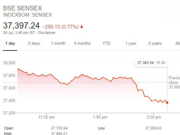 இன்று காலை சென்செக்ஸ் 37,735 புள்ளிகளில் வர்த்தகமாகத் தொடங்கி இறக்கம் கண்டு 37,397 புள்ளிகளில் நிறைவடைந்திருக்கிறது. நேற்றைய குளோசிங் புள்ளியை விட 289 புள்ளிகள் கூடுதல் இறக்கம். அதே போல் நிஃப்டி50 இண்டெக்ஸ் காலை 11,213 புள்ளிகளில் வர்த்தகமாகத் தொடங்கி வர்த்தக நேர முடிவில் 11,085 புள்ளிகளுக்கு வர்த்தகம் நிறைவடைந்தது. நேற்றைய குளோசிங் புள்ளியை விட இன்றைய குளோசிங் 103 புள்ளிகள் கூடுதலாக சரிந்திருக்கிறது.