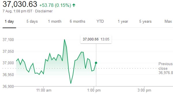 குறிப்பாக மும்பை பங்கு சந்தையின் சென்செக்ஸ் ஒரு மணி நிலவரப்படி 37,010.50 ஆக இருந்தது. தேசிய பங்கு சந்தை நிஃப்டி 3 புள்ளிகள் அதிகரித்து 10,951 ஆக இருந்தது.