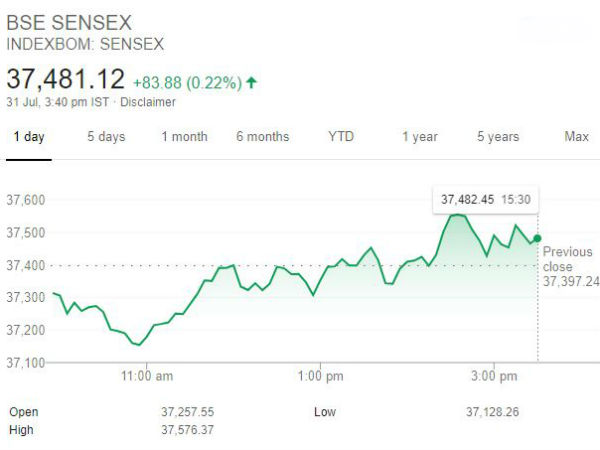 இன்று காலை சென்செக்ஸ் 37,257 புள்ளிகளில் வர்த்தகமாகத் தொடங்கி இறக்கம் கண்டு 37,481 புள்ளிகளில் நிறைவடைந்து இருக்கிறது. நேற்றைய குளோசிங் புள்ளியை விட 83 புள்ளிகள் ஏற்றம். அதே போல் நிஃப்டி 50 இண்டெக்ஸ் காலை 11,034 புள்ளிகளில் வர்த்தகமாகத் தொடங்கி வர்த்தக நேர முடிவில் 11,118 புள்ளிகளுக்கு வர்த்தகம் நிறைவடைந்தது. நேற்றைய குளோசிங் புள்ளியை விட இன்றைய குளோசிங் 32 புள்ளிகள் ஏற்றம் கண்டிருக்கிறது.
