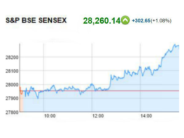 இன்றைய வர்த்தக முடிவில் சென்செக்ஸ் குறியீடு 302.65 புள்ளிகள் வரை உயர்ந்து 28,260.14 புள்ளிகளை அடைந்தது.