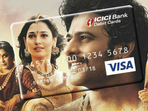 இந்தியாவின் மிகப் பெரிய தனியார் வங்கி சேவை நிறுவனமான ஐசிஐசிஐ வங்கி பாகுபலி திரைப்படத்தில் இருந்து உங்கள் விருப்பனான டிசைனை நீங்கள் தேர்வு செய்து தனிப்பயனாக்குங்கள் என்று டிவிட்டும் செய்துள்ளது.