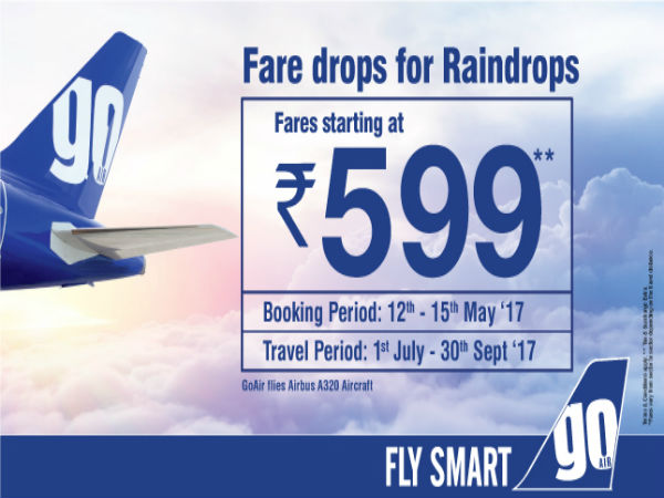 கோஏர் நிறுவனத்தின் 599 ரூபாய் சலுகை விலையில் மே 15ம் தேதி வரை டிக்கெட் புக் செய்யலாம் என்றும், ஜூலை 1 முதல் செப்டம்பர் 30-ம் தேதி வரை பயணம் செய்யலாம் என்று அறிவித்துள்ளது.
