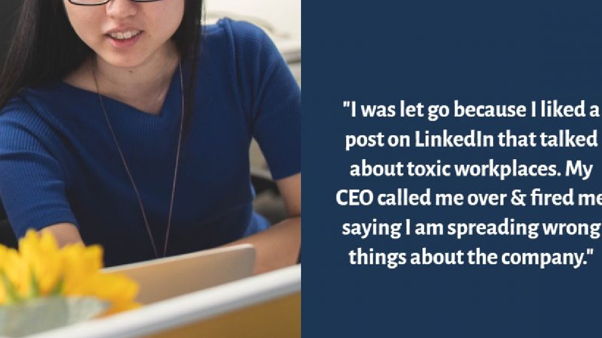 லிங்க்டுஇன் தளத்தில் மோசமான பணி கலாச்சாரம் தொடர்பான ஒரு பதிவை லைக் செய்த ஒரே காரணத்திற்காக என்னுடைய முதலாளி வேலையை விட்டு நீக்கி விட்டார் என அதில் பதிவிட்டுள்ளார். தான் வேலை செய்து வந்த அந்த ஸ்டார்ட்அப் நிறுவனம் மனநலம் சார்ந்த ஒரு ஸ்டார்ட் அப் நிறுவனமாக இருந்தாலும் அந்த நிறுவனத்திற்குள் மிக மோசமான பணி கலாச்சாரமே இருந்து வந்தது என்றும் பல நேரங்களில் தான் கண்ணீருடன் தான் அலுவலகத்தில் இருந்தே வெளியேறுவேன் என்றும் அந்த அவர் பதிவு செய்துள்ளார்.