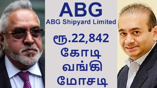 ABG ஷிப்யார்டு நிறுவனம் 28 வங்கி மற்றும் நிதி நிறுவனத்தில் சுமார் 22,842 கோடி ரூபாய் அளவிலான தொகையைக் கடனாகப் பெற்று மோசடி செய்ததாக சிபிஐ வழக்குப் பதிவு செய்துள்ளது. இது தான் இந்தியாவின் மிகப்பெரிய வங்கி மோசடி வழக்காக விளங்குகிறது.