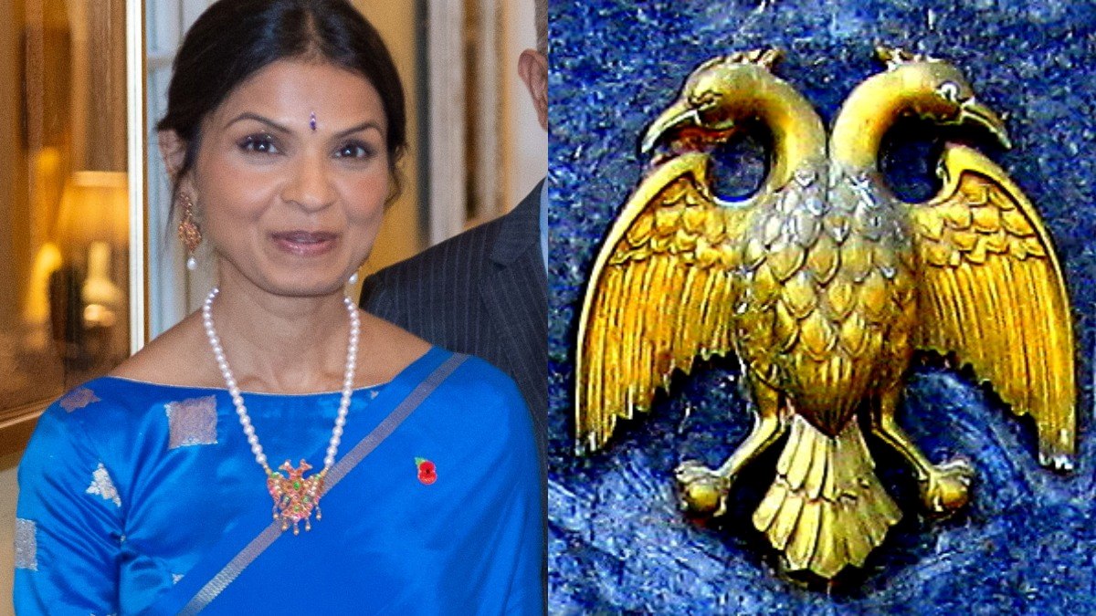 இங்கிலாந்தின் முதல் பெண்மணியான அக்ஷதா மூர்த்தி மைசூரு பட்டுப் புடவை மற்றும் கந்தபெருண்டா நெக்லஸ்-ஐ அணிந்திருந்தார். கந்தபெருண்டா அல்லது பேருண்டா என்பது இந்து புராணங்களில் இரண்டு தலைகள் கொண்ட பறவை மற்றும் இது விஷ்ணுவின் வடிவமாகக் கருதப்படுகிறது.