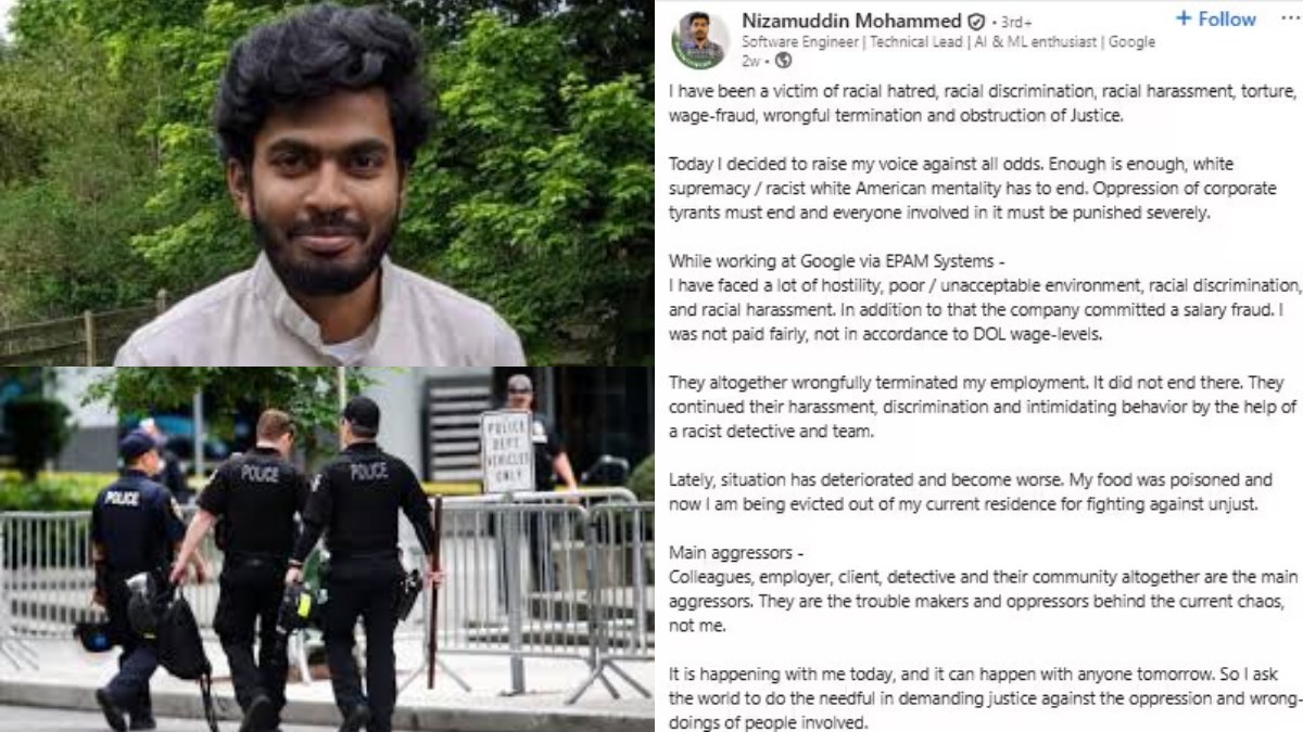 இதற்கிடையே அமெரிக்காவில் சாண்டா கிளாரா மாவட்ட காவல் துறையினர் இந்த சம்பவத்தில் விரிவான விசாரணை நடத்தி வருவதாக தெரிவித்து இருக்கின்றனர் . 30 வயதாகக்கூடிய முகமது நிஜாமுதீன் தன்னுடைய லிங்குடிங் பக்கத்தில் சில தினங்களுக்கு முன்னர் இனரீதியாக பணியிடத்தில் தன்னை பலரும் விருது ஒதுக்கினர் என பதிவு செய்திருப்பது தற்போது தெரிய வந்திருக்கிறது.