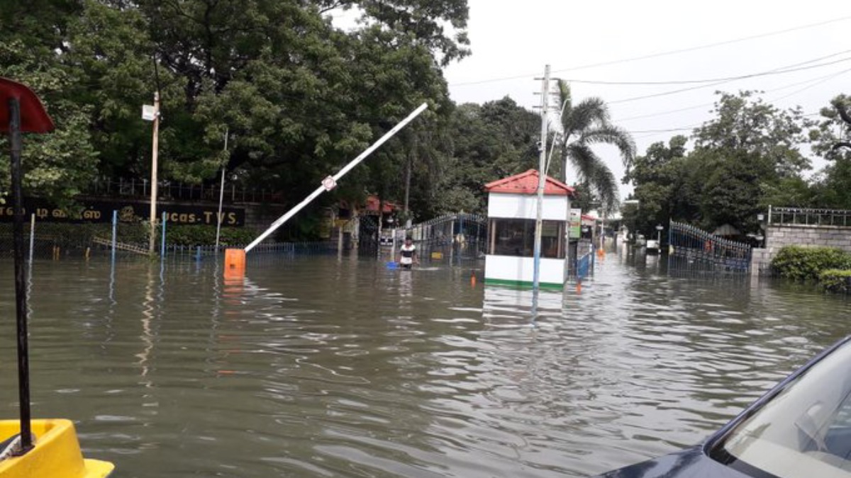 இப்படியிருக்கும் வேளையில் இன்று காலையில் பாடி-யில் இருக்கும் டிவிஎஸ் தொழிற்சாலையின் புகைப்படம் வெளியானது. டிவிஎஸ் தொழிற்சாலை நுழைவு வாயிலில் இருந்து தொழிற்சாலையின் இறுதி வரையில் இடுப்பு அளவுக்கு மழை நீர் தேங்கி இருக்கிறது.