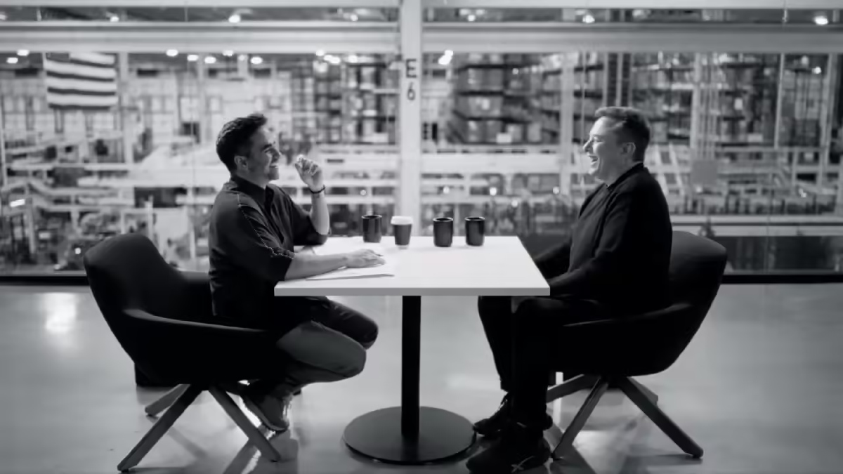 நிகில் காமத் X-ல் வெளியிட்ட 39 வினாடி வீடியோ டீசர், இருவரும் டெஸ்லா தொழிற்சாலை இயந்திரங்கள் நடுவே எலான் மஸ்க் அலுவலகத்தில் காபி குடித்துக்கொண்டு சிரிப்பதை போன்ற வீடியோ வெளியாகியுள்ளது. நிகில் காமத் இந்த வீடியோவுக்கு "Caption this" என்று போஸ்ட் செய்து எலான் மஸ்க்கை டேக் செய்துள்ளார். இது 38 லட்சம் பார்வைகளை தொட்டுள்ளது.