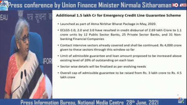 அவசர கடன் உத்தரவாத திட்டத்தின் மூலம் 1.0, 2.0, 3.0 என சுமார் 2.69 லட்சம் கோடி ரூபாய் தொகையை இதுவரை 1.1 கோடி நிறுவனங்களுக்கு 12 பொதுத்துறை வங்கிகள், 25 தனியார் வங்கிகள், 31 NBFC நிறுவனங்கள் மூலம் கடன் அளிக்கப்பட்டு உள்ளது.