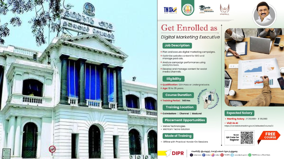 இன்றைய டிஜிட்டல் மயமான வாழ்க்கையில், டிஜிட்டல் மார்க்கெட்டிங் பிரிவில் அதிகப்படியான வேலைவாய்ப்புகள் உருவாகி வரும் வேளையில், இத்துறையில் தமிழ்நாட்டு இளைஞர்களை ஆயத்தப்படுத்த இந்த கோர்ஸ் உருவாக்கப்பட்டு உள்ளது.
