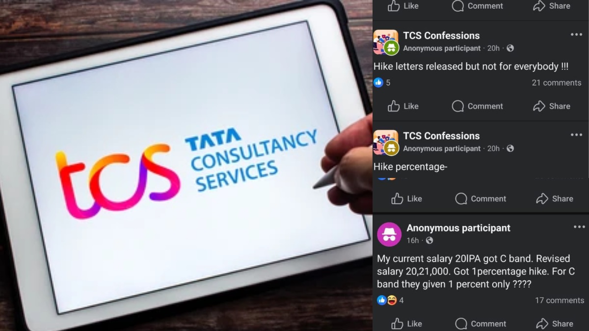 1% தான் சம்பள உயர்வு: சமூக வலைத்தளங்களில் டிசிஎஸ் கன்ஃபெசன்ஸ் என்ற பக்கங்களில் டிசிஎஸ் நிறுவன ஊழியர்கள் தங்களுக்கு வெறும் 1 சதவீதம் தான் சம்பள உயர்வு கிடைத்திருப்பதாக பகிர்ந்திருக்கின்றனர். ஒரு நபர் நான் சி பேண்ட் பிரிவில் சம்பளம் பெறுகிறேன் என்னுடைய தற்போதைய ஆண்டு ஊதியம் 20 லட்சம் ரூபாய் அதனை தற்போது 20 லட்சத்து 21 ஆயிரம் ரூபாயாக உயர்த்தி வழங்கி இருக்கிறார்கள், 1 சதவீதம் தான் சம்பள உயர்வு வழங்கி இருக்கிறார்கள் என தெரிவித்திருக்கிறார்.