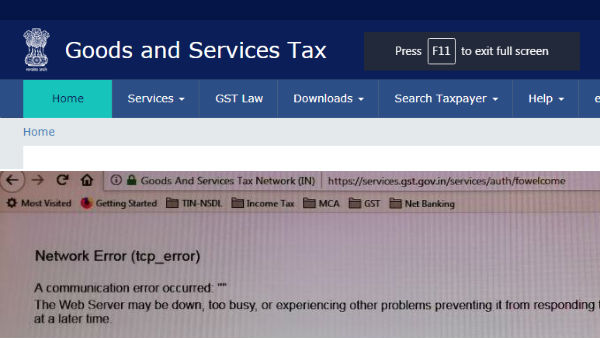 ஜிஎஸ்டி போர்டலை திறந்ததும், "இங்கு சில பிரச்சினை உள்ளது. தடங்களுக்கு வருந்துகிறோம். உங்கள் பொறுமை பாராட்டத்தக்கது" என்று தெரிவிக்கப்பட்டுள்ளது.