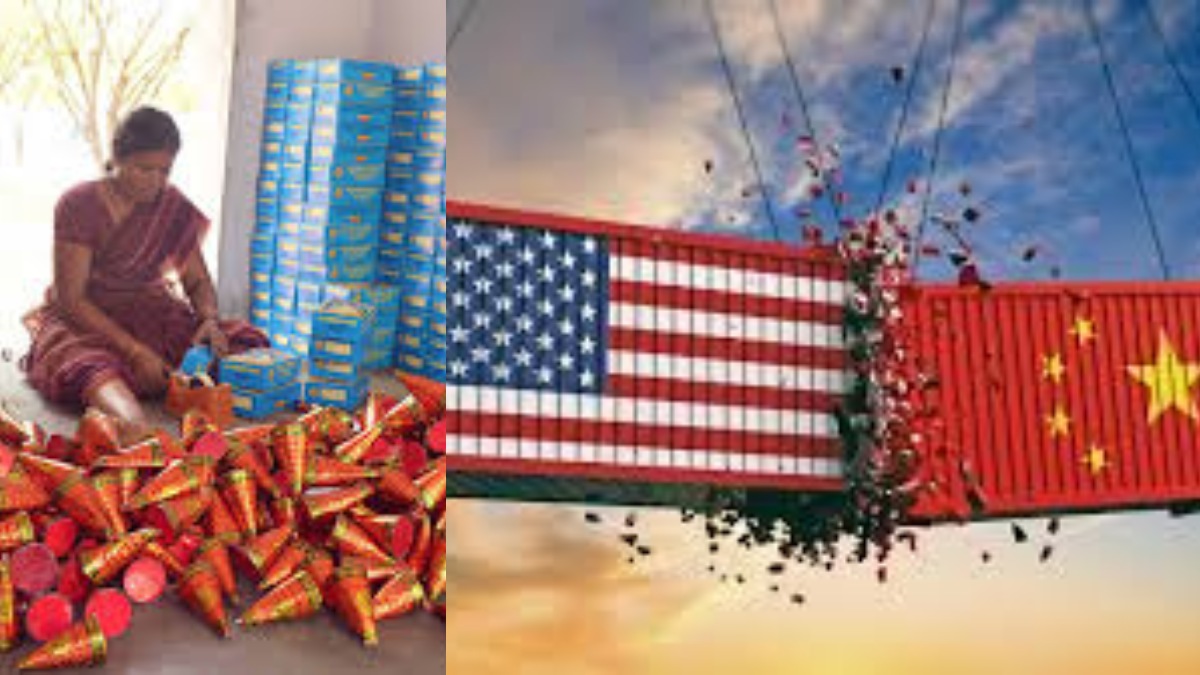 உதாரணமாக அமெரிக்காவில் பட்டாசு சீனாவில் இருந்து தான் இறக்குமதி செய்து பயன்படுத்தப்படுகிறது. அப்போது பட்டாசுகளின் விலை 15லிருந்து 60 டாலராக இருந்தது. தற்போது வரிவிதிப்புக்கு பிறகு இறக்குமதி செய்து விற்பனை செய்தால் அதன் விலை 135 டாலராக உயரும். எனவே இந்தியாவில் குறிப்பாக தமிழ்நாட்டின் சிவகாசி பகுதியில் அதிகளவு பட்டாசுகளை உற்பத்தி செய்து அவற்றை அமெரிக்காவிற்கு அதிகமாக ஏற்றுமதி செய்யும்போது ஒட்டுமொத்தமாக சிவகாசியின் பொருளாதாரம் மேம்படுவதற்கான வாய்ப்பு கிடைக்கும்.