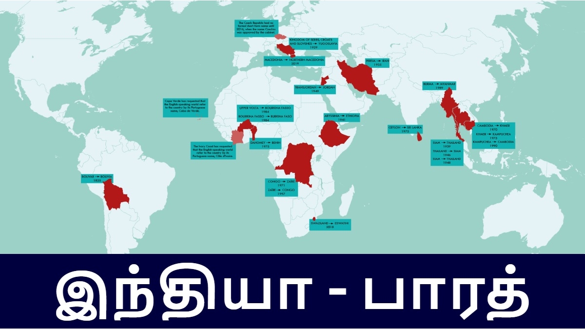இந்த நிலையில் உலகளவில் பெயரை மாற்றிக்கொண்ட நாடுகளின் பட்டியலை தான் நாம் இப்போது பார்க்கப்போகிறோம். இதோடு ஒரு நாடு எதற்காக தனது பெயரை மாற்றிக்கொள்கிறது என்பதற்கான காரணத்தையும் இப்போது பார்ப்போம்.