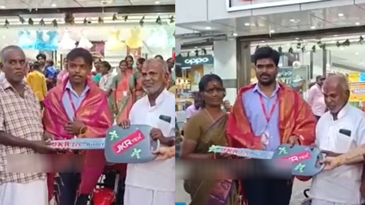 இந்தப் பரிசை ஊழியர்களின் குடும்பத்தினரை அழைத்து இந்த மகிழ்ச்சியான தருணத்தைப் பகிர்ந்துள்ளார் JKR டெக்ஸ்டைல்ஸ் ரமேஷ். இதன் மூலம் கள்ளக்குறிச்சி மக்கள் மத்தியில் JKR டெக்ஸ்டைல்ஸ் தனி மதிப்பை பெற்றுள்ளது.