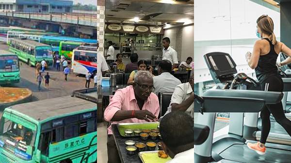 கேளிக்கை விடுதிகள், உடற்பயிற்சி கூடங்கள், யோகா மையங்கள் விளையாட்டுக்கள், உணவகங்கள், 50% வாடிக்கையாளர்களுடன் அனுமதி