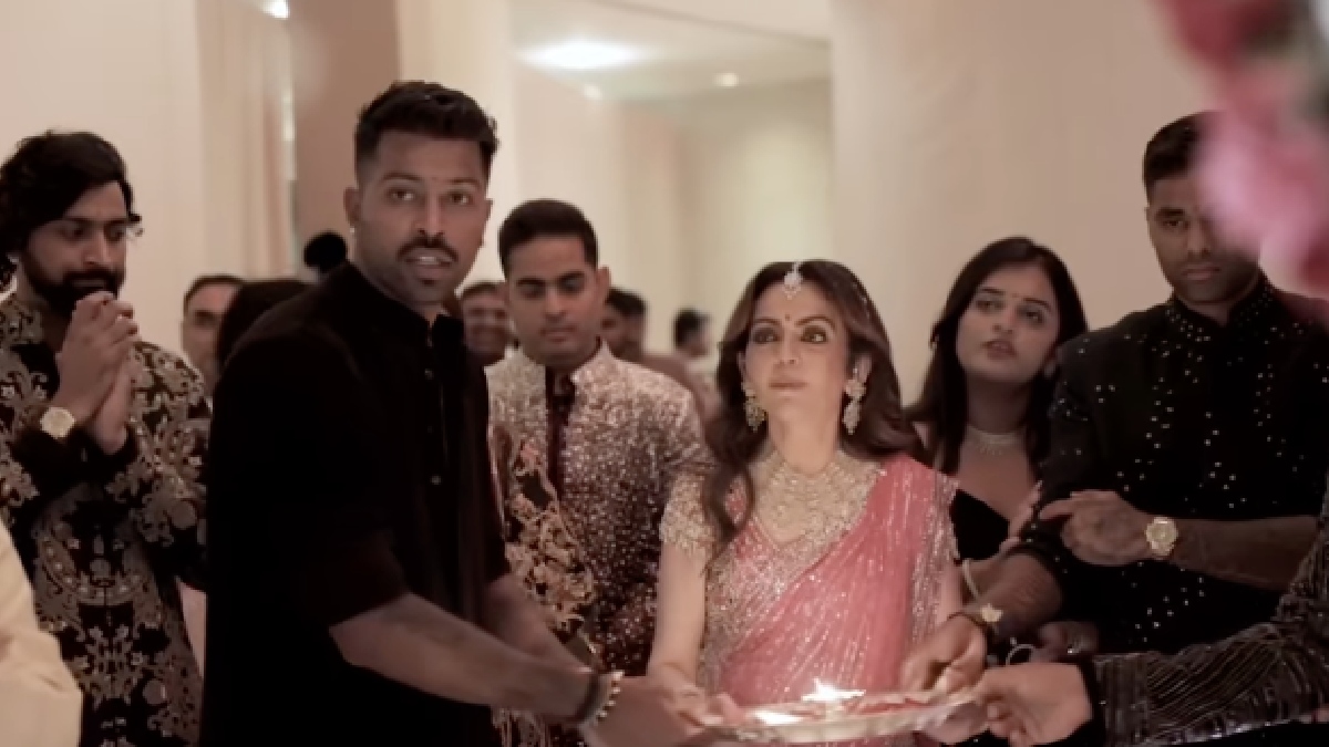 அம்பானி குடும்பத்தினருடன் கிரிக்கெட் வீரர்கள் "ஹர ஹர மஹாதேவ்" என்று கோஷமிட்டு வரும் வீடியோ தற்போது இணையத்தில் டிரெண்டாகியுள்ளது.