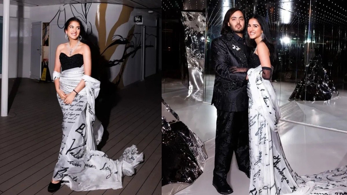 இந்த விழாவில் மிகவும் கவனிக்கத்தக்க விஷயமாக இருந்தது, ராதிகா மெர்ச்சன்ட் அணிந்திருந்த கவுன் ஆகும். லண்டனை தலைமையிடமாகக் கொண்ட டிசைனர் ராபர்ட் வன் (Robert Wun) என்பவரால் வடிவமைக்கப்பட்ட இந்த கருப்பு கவுனில், ராதிகாவுக்கு ஆனந்த் அம்பானி தனது 22 வயதில் அவருக்கு எழுதிய காதல் கடிதம் மொத்தமாக அச்சிடப்பட்டிருந்தது.