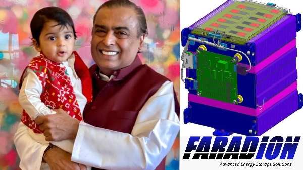 ரிலையன்ஸ் இண்டஸ்ட்ரீஸ் நிறுவனத்தின் சோலார் கிளை நிறுவனம், சோடியம் ஐயன் பேட்டரி தொழில்நுட்ப நிறுவனமான Faradion-ஐ சுமார் 100 மில்லியன் பவுண்ட் தொகைக்குக் கைப்பற்றியுள்ளது. இதன் மூலம் பேட்டரி தயாரிக்கும் தொழிற்சாலைக்கான தொழில்நுட்பத்தை ரிலையன்ஸ் இலவசமாகப் பெற முடியும்.