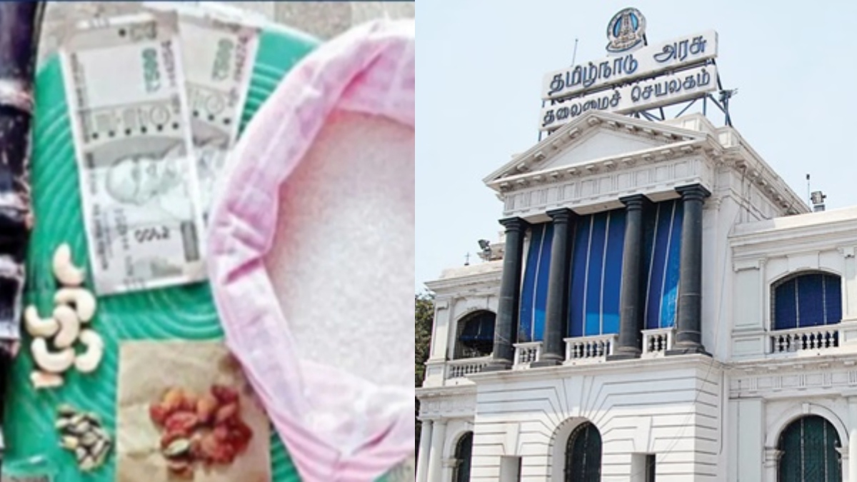 இந்த நிலையில், தமிழ்நாடு அரசு பொங்கல் பண்டிகையை எவ்வித வறுமையும் இன்றி, அனைவரும் மன மகிழ்வுடன் கொண்டாட வேண்டும் என்பதற்காக தமிழ்நாடு அரசு சார்பில் வருடவருடம் பொங்கலுக்காக பொங்கல் வைக்க சிறப்பு பொருட்களுடன் பணம் வழங்கப்படுகிறது. அந்த வகையில் சர்க்கரை, கரும்பு, அரிசி முதலிய பரிசு தொகுப்புடன் ரூ. 1000 ரொக்கமும், இலவச வேட்டி, சேலை முதலியவை அனைத்து ரேஷன் கடைகளிலும் தமிழக அரசு சார்பில் பொங்கல் பரிசாக வழங்கப்பட்டு வருகிறது. அத்துடன் இந்த முறை வரும் பொங்கல் பண்டிகைக்கு மகளிர் உரிமை தொகையுடன் சேர்ந்து ரூ.2000 ஆக வழங்கப்படும் என்று கூறப்படுகிறது.
