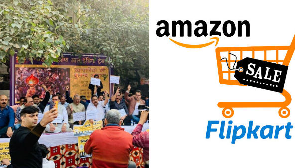 "ஆர்ப்பாட்டத்தில் ஈடுபட்ட வர்த்தகர்கள், இந்தியாவின் இ-காமர்ஸ் சந்தையை அமேசான் மற்றும் பிளிப்கார்ட் ஆகியவை தங்களது நெறிமுறையற்ற வர்த்தக நடைமுறைகள் மற்றும் அரசின் அன்னிய நேரடி முதலீட்டுக் கொள்கையை வெளிப்படையாக மீறுவதன் மூலம் மிகவும் நச்சுத்தன்மையடையச் செய்துள்ளன" என்று கண்டித்தனர் என்கிறது அகில இந்திய வர்த்தகர்களின் கூட்டமைப்பு.