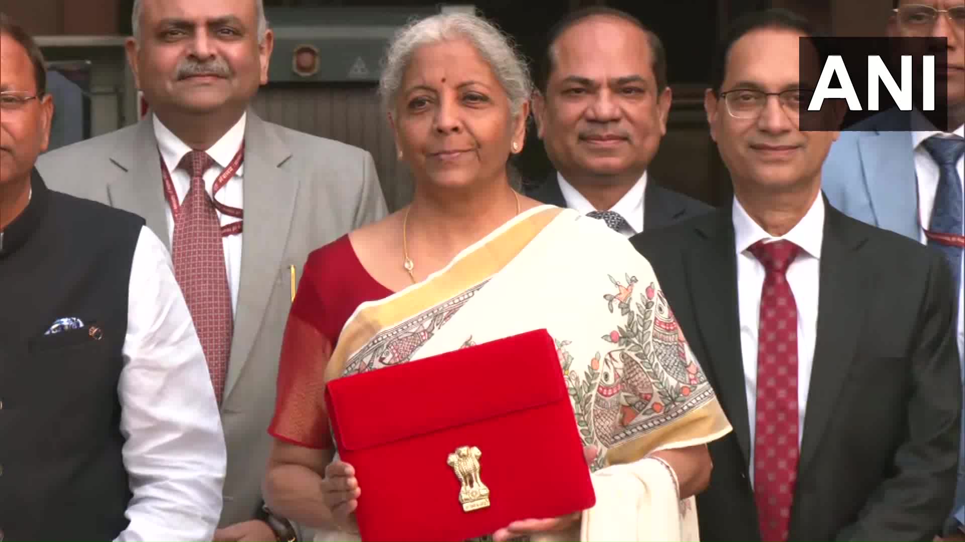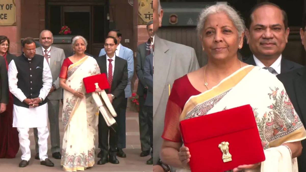 மத்திய நிதியமைச்சர் நிர்மலா சீதாராமன் நாடாளுமன்றத்திற்கு வந்தார், அவர் பாரம்பரியமான 'பாஹி கட்டா'விற்குப் பதிலாக, ஒரு டேப் மூலம் பட்ஜெட்டை முன்வைத்து வாசிப்பார்.