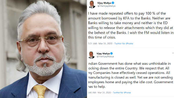இந்தியாவில் தொற்று மேற்கொண்டு பரவாமல் இருக்க, மத்திய அரசு இந்தியாவில் 21 நாள் ஊரடங்கு உத்தரவினை அமல்படுத்தியுள்ளது. இந்த நிலையில் பல நிறுவனங்களும் முடங்கியுள்ளன. இந்த நிலையில் வங்கியில் கடனை வாங்கிவிட்டு, சரியாக திரும்ப செலுத்தாமல் லண்டனுக்கு தப்பி ஓடிய கிங்க்பிஷர் ஏர்லைன்ஸ் நிறுவனத்தின் தலைவர் விஜய் மல்லையா. தான் இன்று வரை அரசின் முடிவுக்கு ஏற்ப அனைத்து நிறுவனங்களின் செயல்பாடுகளையும் நிறுத்தியுள்ளதாக கூறியுள்ளார்.