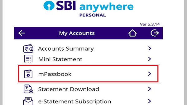 உங்களது மொபைலில் SBI Anywhere app லாகின் செய்து கொள்ளுங்கள். அதில் வலது பக்கத்தில் mPassbookக்கிற்கான லிங்க் இருக்கும். அதனை கிளிக்ம் செய்து, உங்களது ஐடி மற்றும் பார்வேர்டினை கொடுத்து லாகின் செய்து கொள்ளுங்கள். அதன் பிறகு mPassbook ஆக்சஸினை கிளிக் செய்யவும். இதன் பிறகு mPassbook வெற்றிகரமாக திறக்ககும். அதில் ஏற்கனவே பரிவர்த்தனை செய்த விவரங்களை பார்க்க முடியும்.